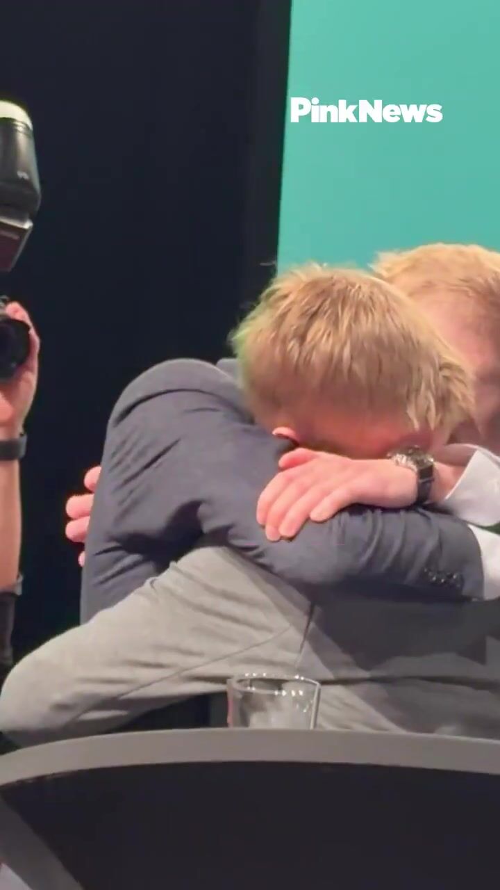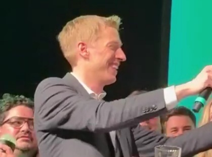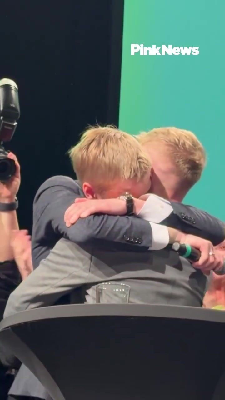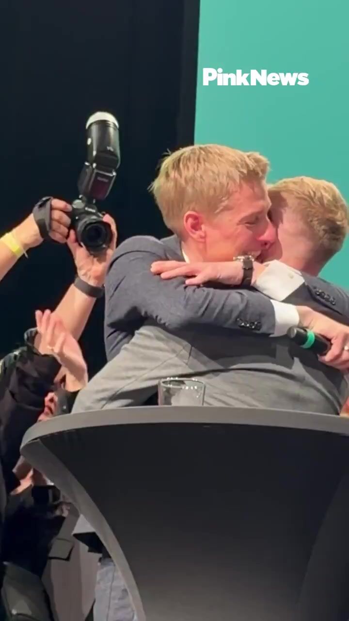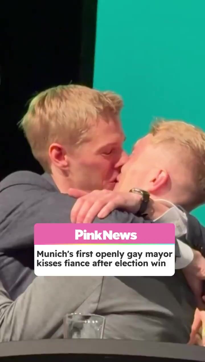 Munich’s newly elected mayor kisses his fiancée on the lips after becoming the first