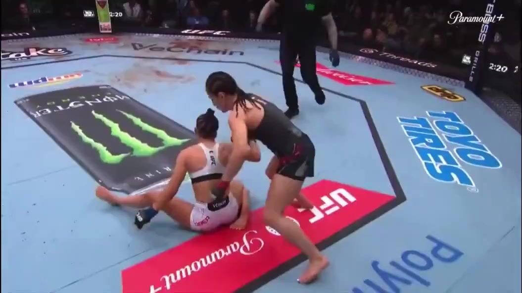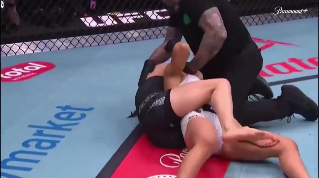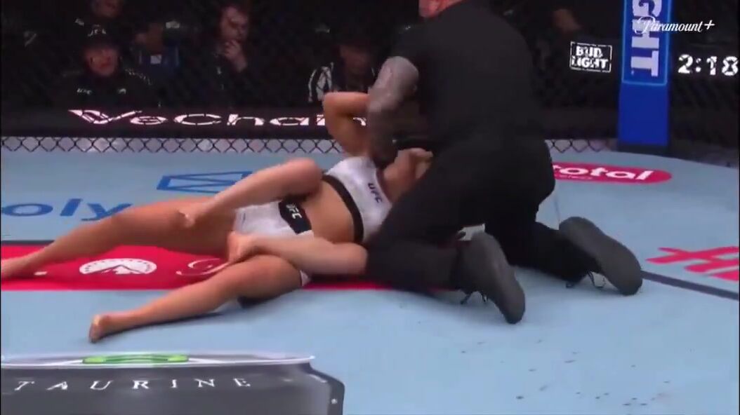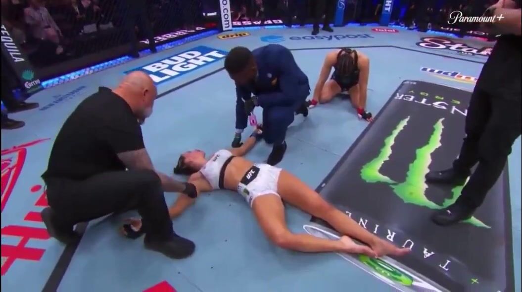 She's Maycee Barber, KO'd cold by Alexa Grasso via punch at 2:42 of round 1 in their UFC Seattle co-main event.