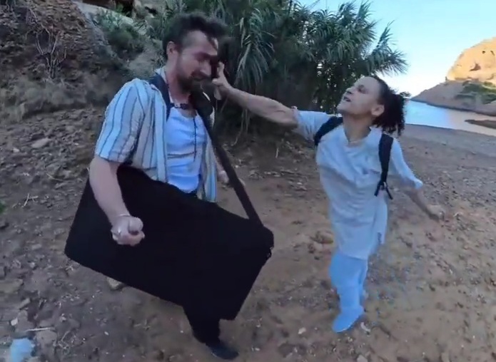 after finishing my mix, i packed my stuff and headed for the single exit of the area. carrying 30kg of gear on my back, my dj mixer in one hand, and my 360 camerain the other, i began documenting what had happened. little did i know that she would appear again, corner me next to the rocks and start her own unprovoked confrontation.