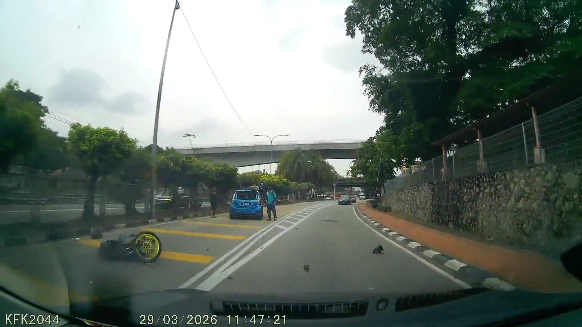 That is the most legendary aerial flippies by a collision victim I've ever seen! Just spectacular and landing on the blue car? Insult to injury though given a car is less impactful than the road