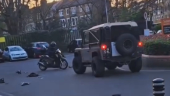 A thief with 14-inch machete trying to steal a motorbike gets rammed by a car