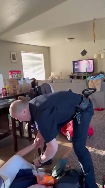 They claim an officer showed up with a woman who legally was not supposed to be near the property due to protective orders and instead of verifying anything he allegedly ignored the paperwork crumpled it and forced his way inside.