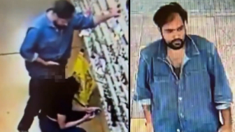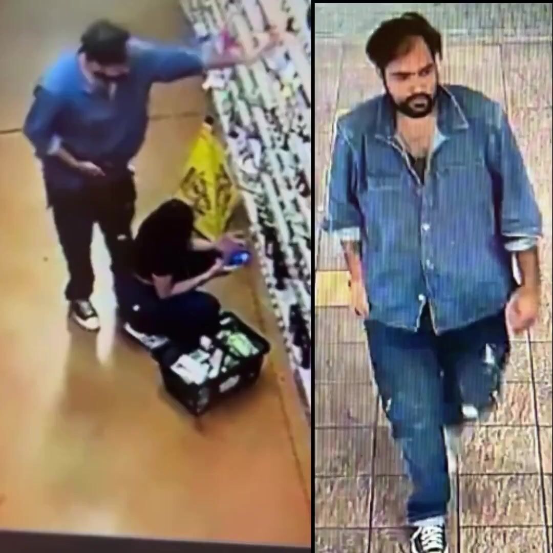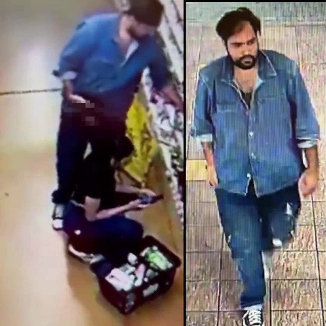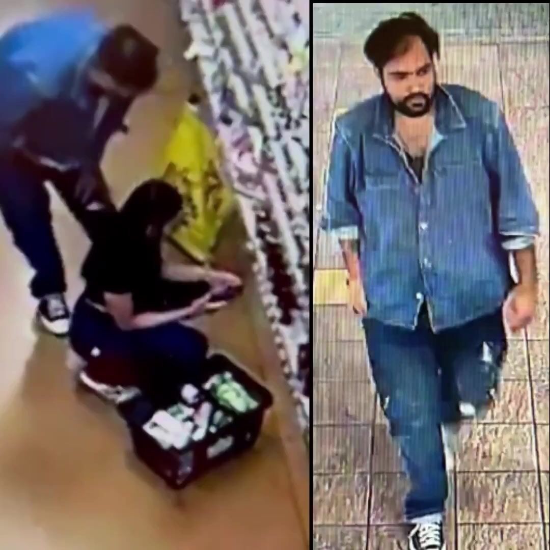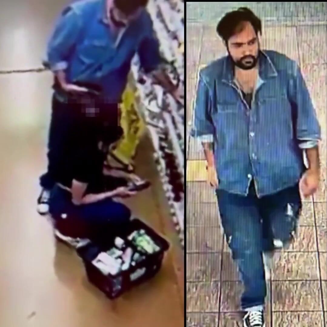 In the footage, the suspect is seen approaching a shopper as she kneels down. He’s seen on the video lowering his pants, then he presses his exposed genitals against the woman’s ear while holding what appears to be a cellphone, according to KTLA.