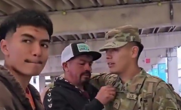 U.S.soldier meets with his family before departing, unaware of what might happen next