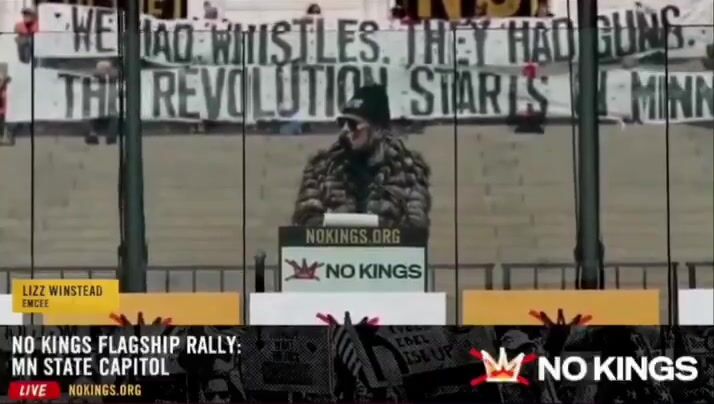 The irony is thick: a "No Kings" rally speaker dictating to followers like a king, calling for human "pack mules" while the group pushes what appears to be a communist agenda and supporters are falling for it.