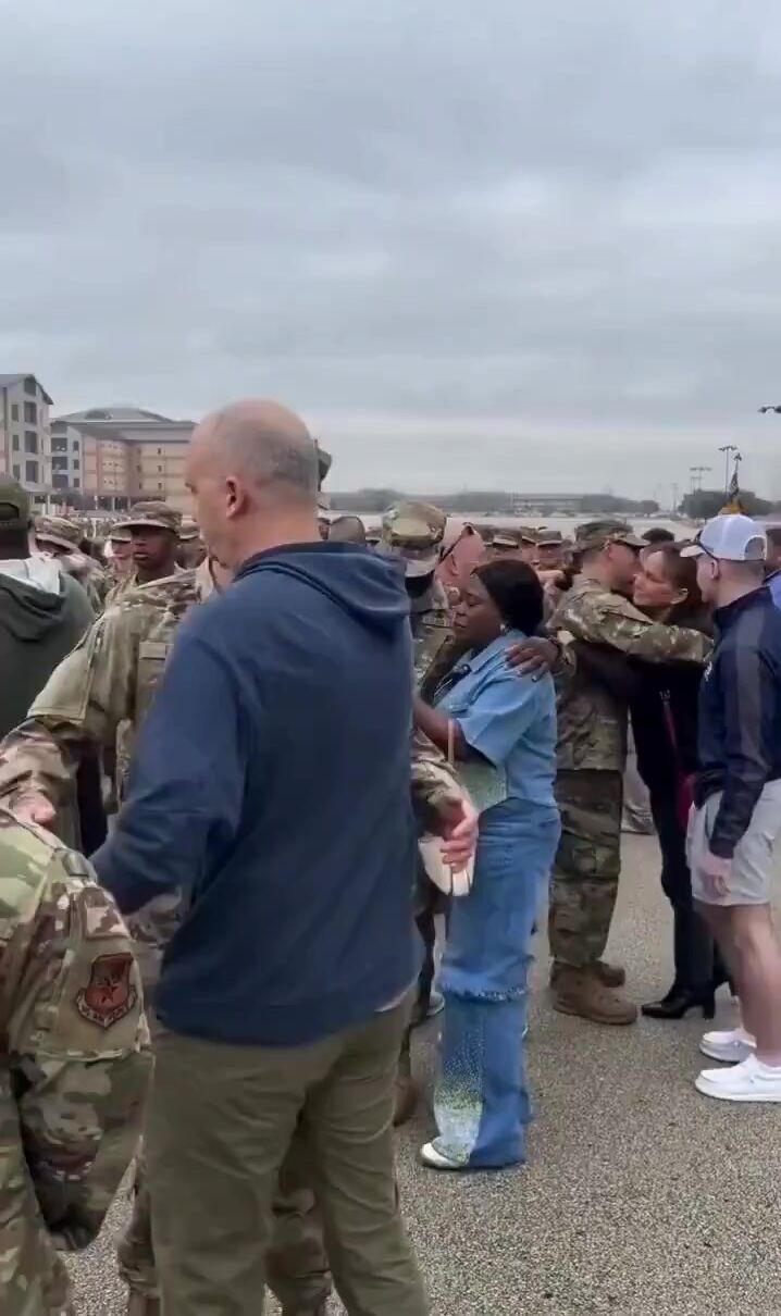 U.S. families hugging before saying goodbye. How dare Donald Trump do this to us all