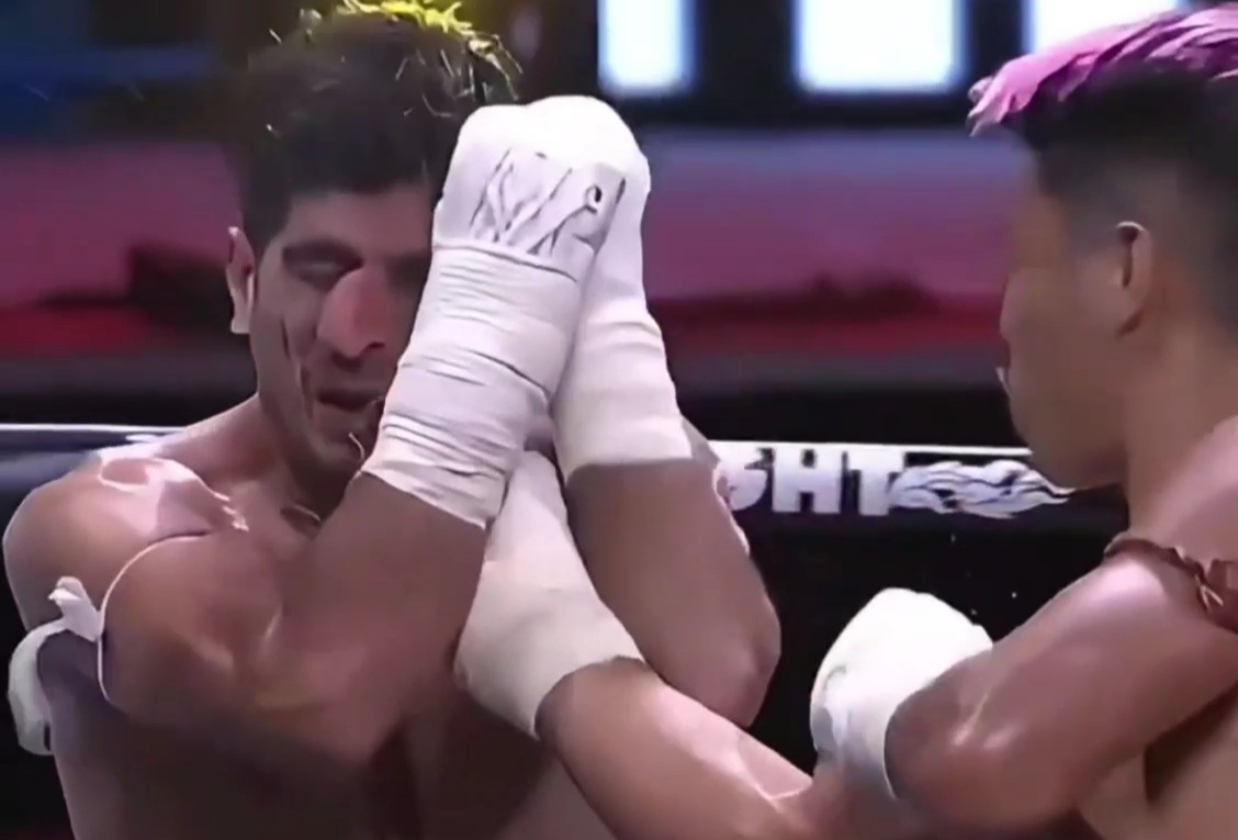 That’s gotta hurt. Muay Thai fighter has his nose smashed out of shape.