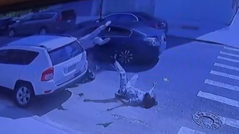 The suspects fled on a moped but crashed two blocks away. One suspect was taken to the hospital and is now a person of interest