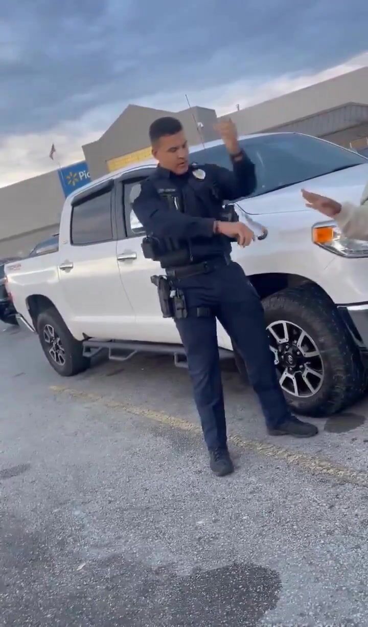 I'll put my hands behind my back for you (talking to the BLACK officer)