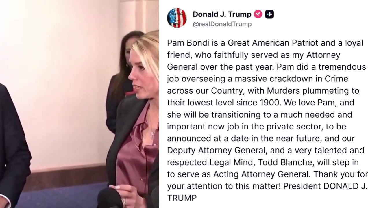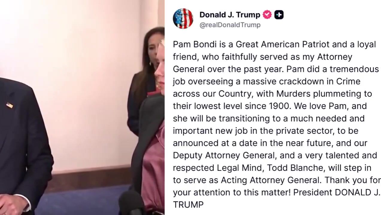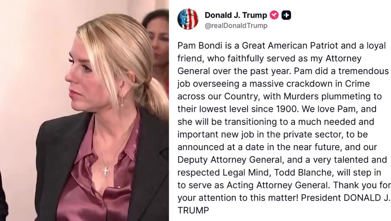 President Trump confirms Pam Bondi is OUT as Attorney General