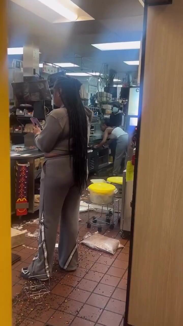 Black woman completely loses it and destroys a McDonalds after they put onions on her burger