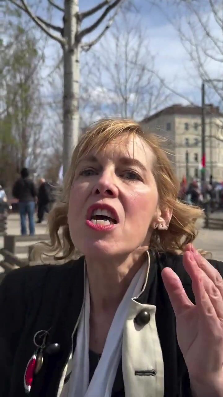 I don’t know where this woman is, but she’s obviously somewhere in Germany since she addresses the person filming her that way. All I can say about this is that Germans have really turned into idiots these days. And these pro-Israel demonstrations are painful to watch, too. Because they only serve to perpetuate eternal guilt and self-hatred—all because some Germans did something terrible 80 years ago.
