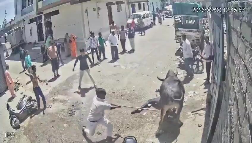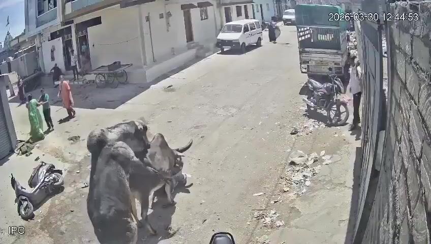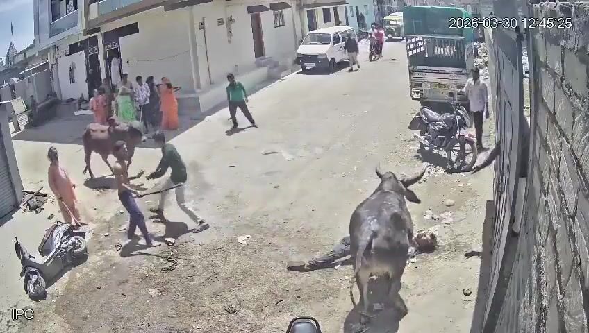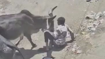 A CCTV footage of the incident showed the man riding his two-wheeler along a street when the bull approached the vehicle and mows it down, with the man still on it. The bull then continues to attack the man, who tries to defend himself. Eventually, the man loses strength to fight back and collapses out of weakness.