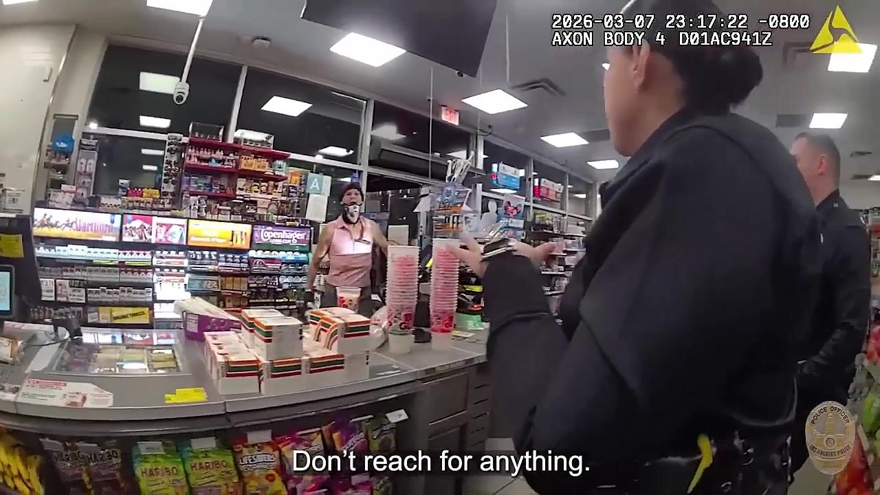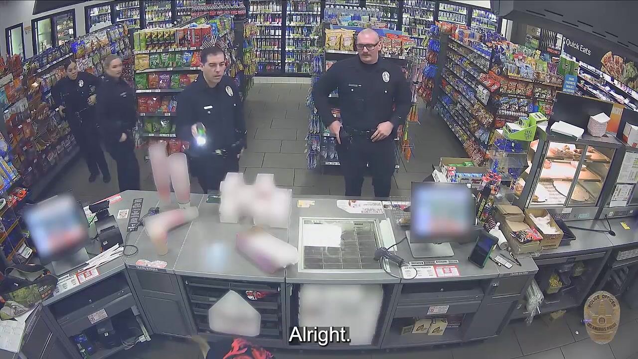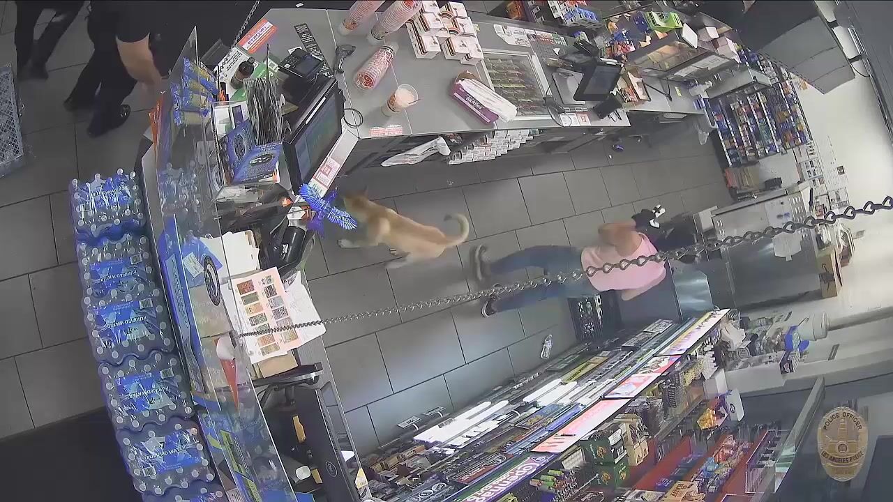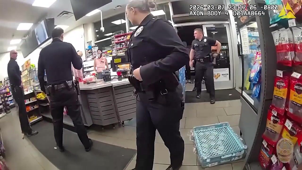 An armed robbery suspect behind the counter of a 7-11 pulled out a handgunb and gets fatally shot by LAPD officers