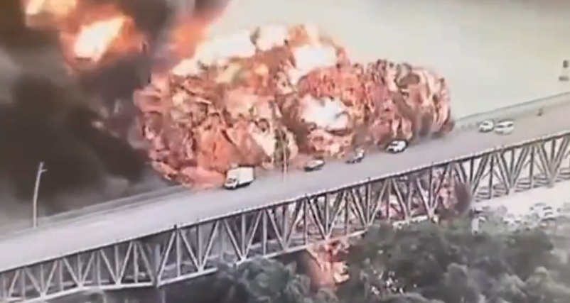 Massive explosion from a tanker near the Bridge of the Americas in Panama City, Panama