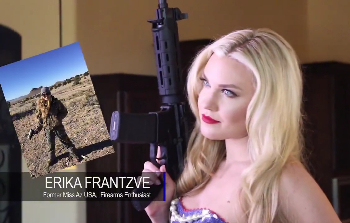 The Weaponry: They aren't just using props. These are amnesty-registered Savage M-1s and custom AR-15s. Why was a "Miss Arizona" being used to market high-level firepower in a kitchen setting?