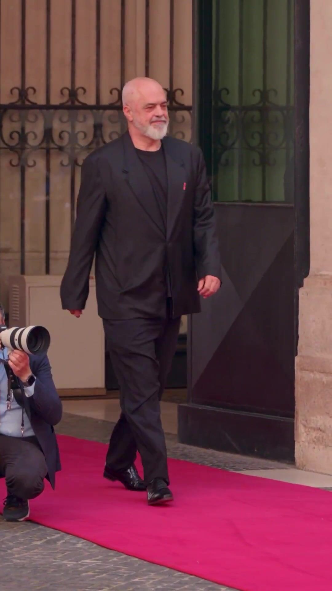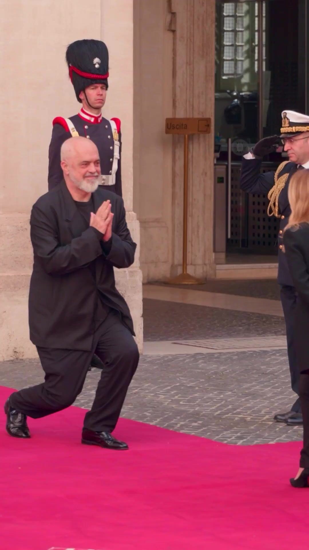 Albanian PM Edi Rama kneels before Italian PM Giorgia Meloni for the third time in the past year.
