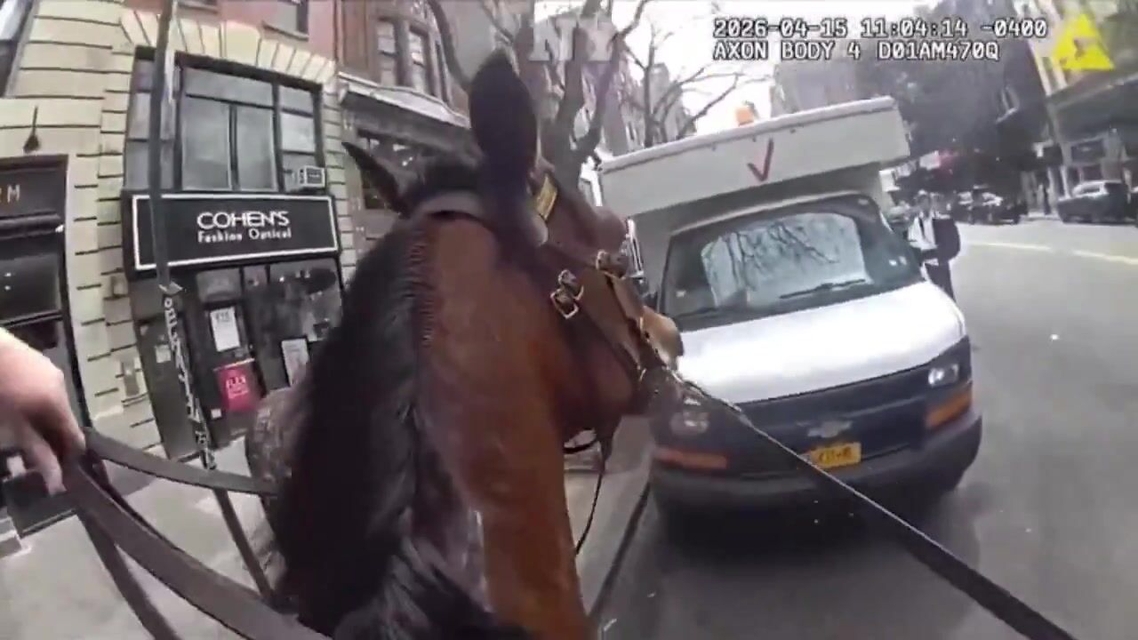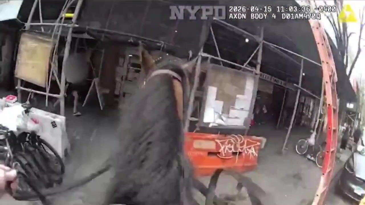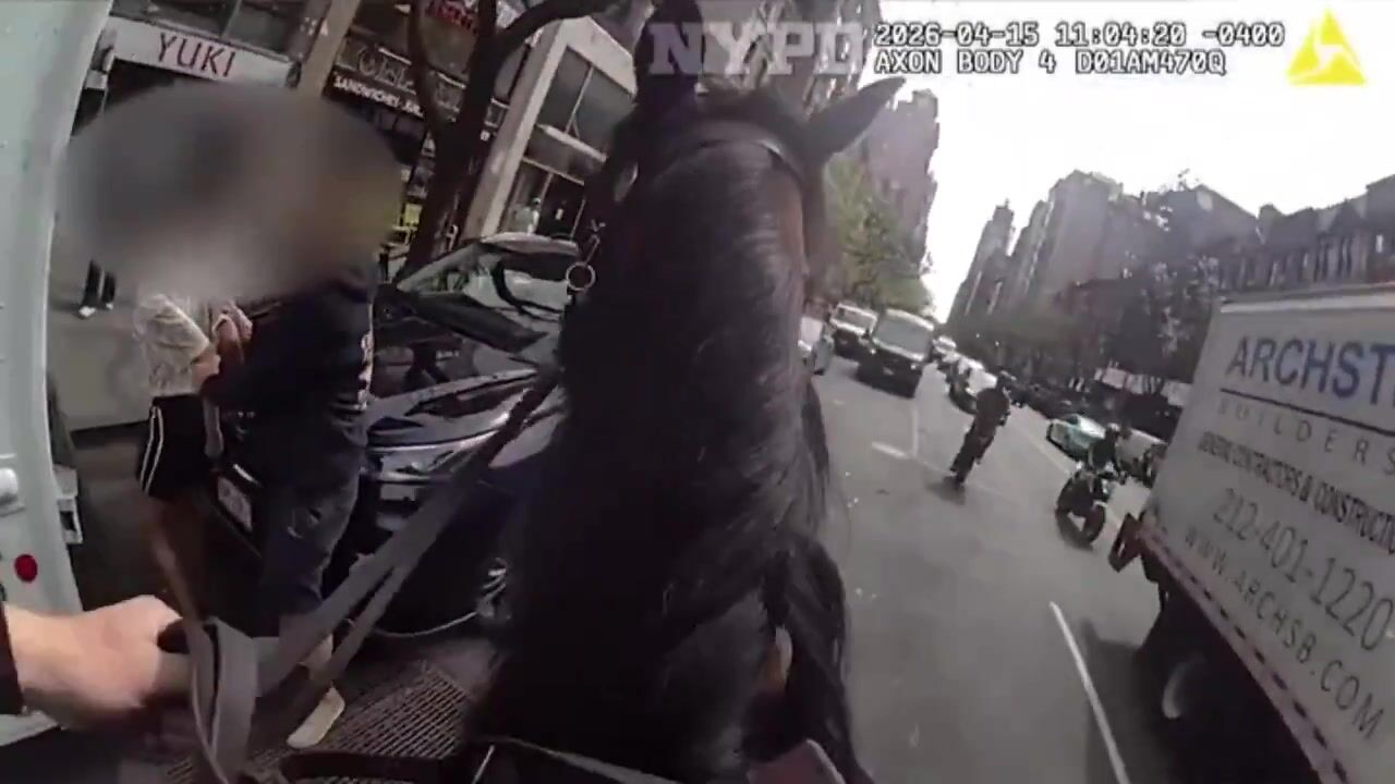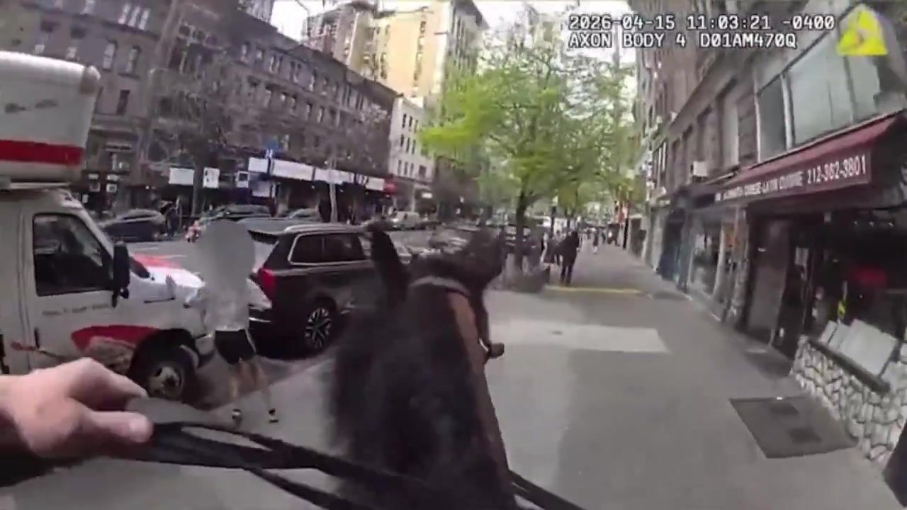 NYPD officer on horseback chases down a suspected purse thief in New York City.
