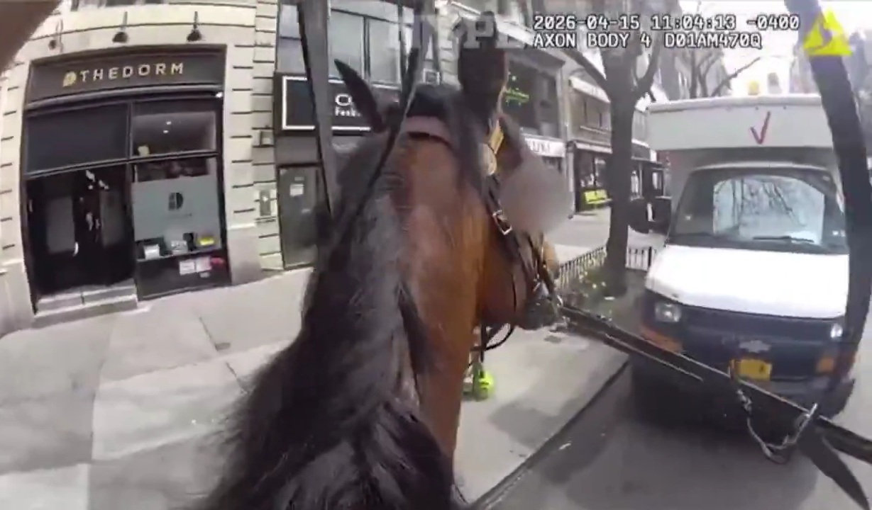 What is this18 fucking 70? We live in 2026 and we have law enforcement running around in the fucking streets of busiest city in American on fucking horses???? I'm surprised he didn't throw his lasso around her....