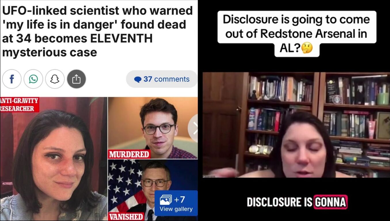 UFO-linked scientist who warned 'my life is in danger' before she was found dead