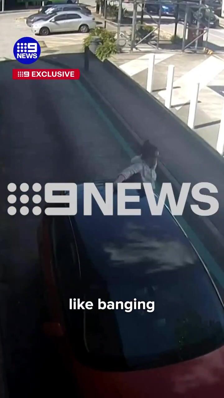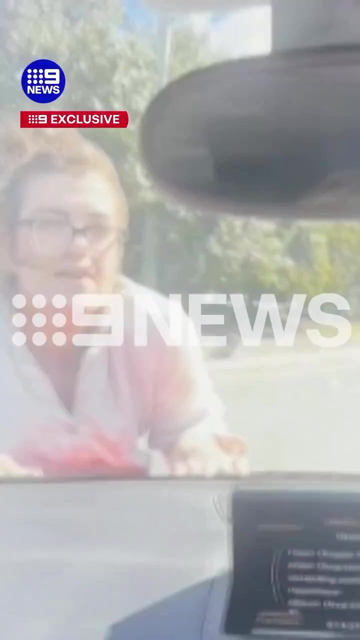 Woman’s face quickly goes from smug to terrified after she dared an aspiring paralympian to keep driving as she clung to her hood.