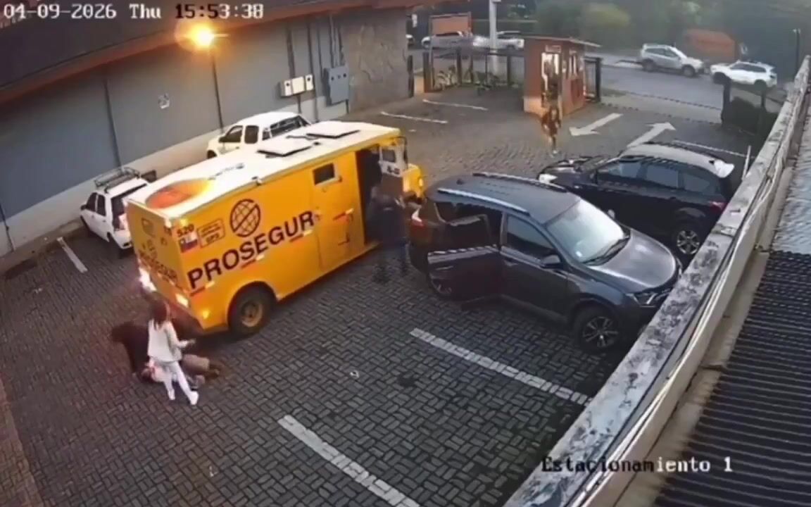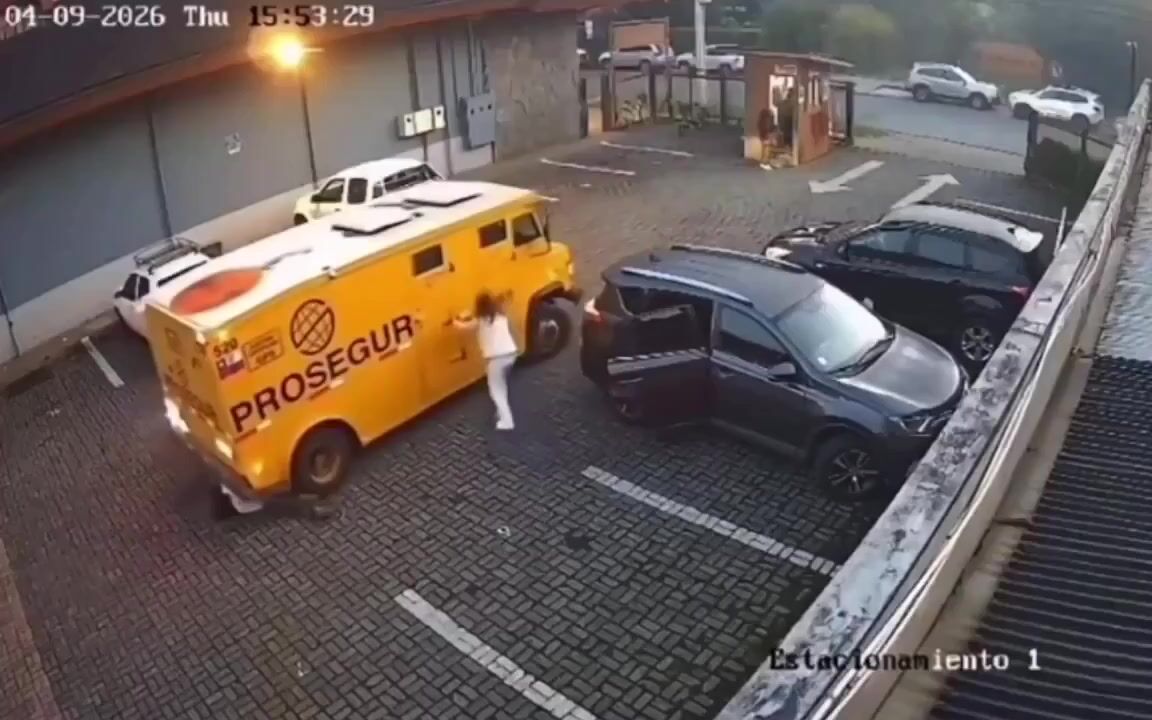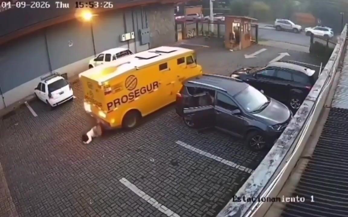 Disturbing security footage from Pucón, Chile, shows an armored cash transport truck reversing into a parking area and hitting two women in just a matter of seconds. Authorities said the driver did not see them while backing up, and the impact left both victims injured. One woman reportedly suffered serious leg trauma, while the other was also taken to the hospital for treatment. The driver was detained at the scene, and the case is now under investigation.