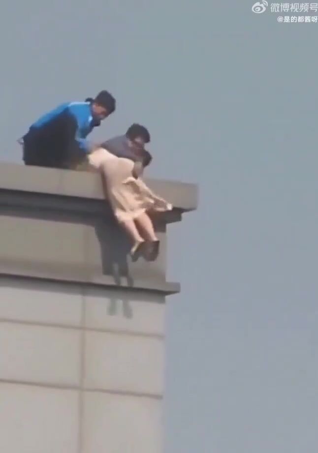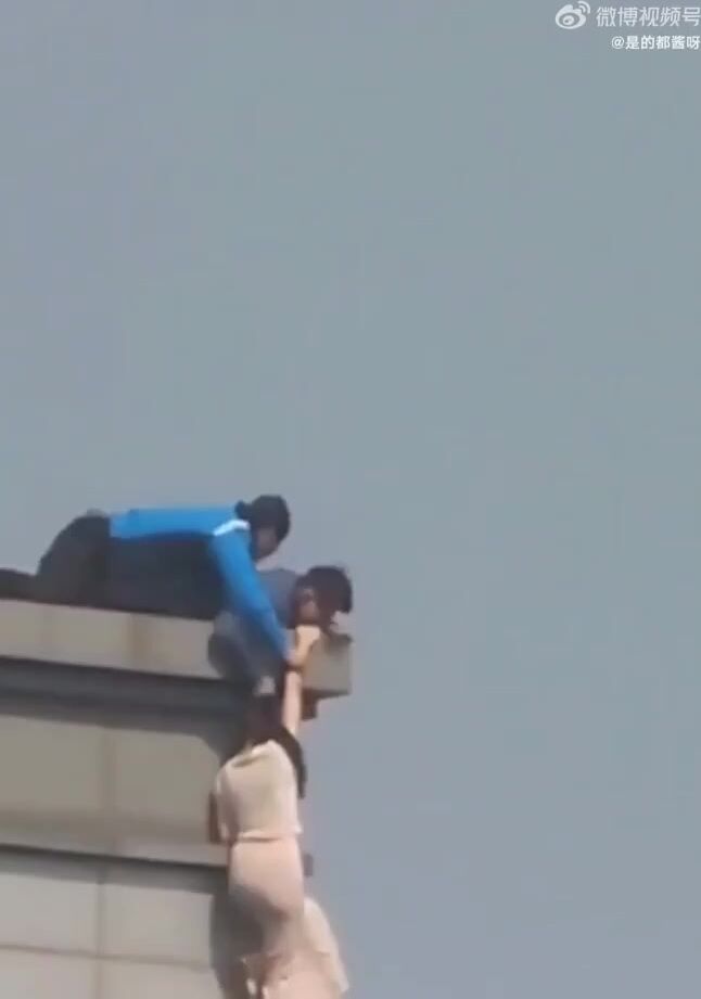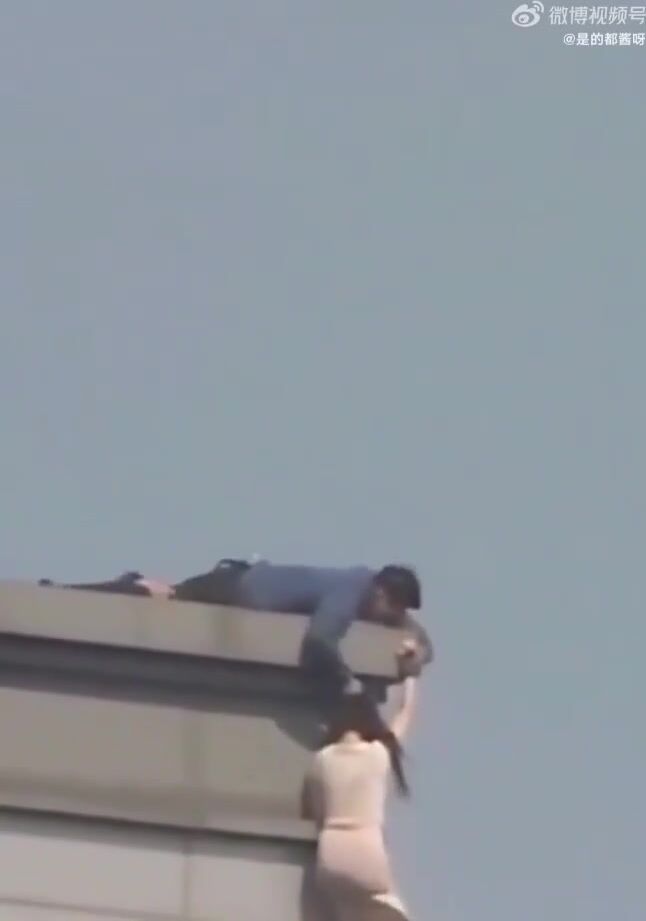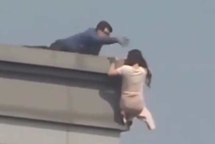 but she was saved by a man who grabbed her by her hair and pulled her up.