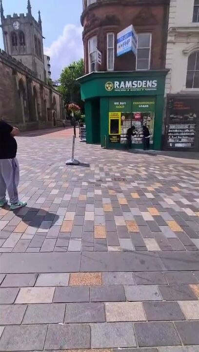 During the daytime with numerous bystanders present, three masked individuals attempted to rob Ramsdens jewellers in Derby. Wielding hammers, they tried to smash the display windows but were unable to break the glass. This is the new norm in UK. And look at the bystanders. All of them look like immigrants, not typical UK ethnic background.