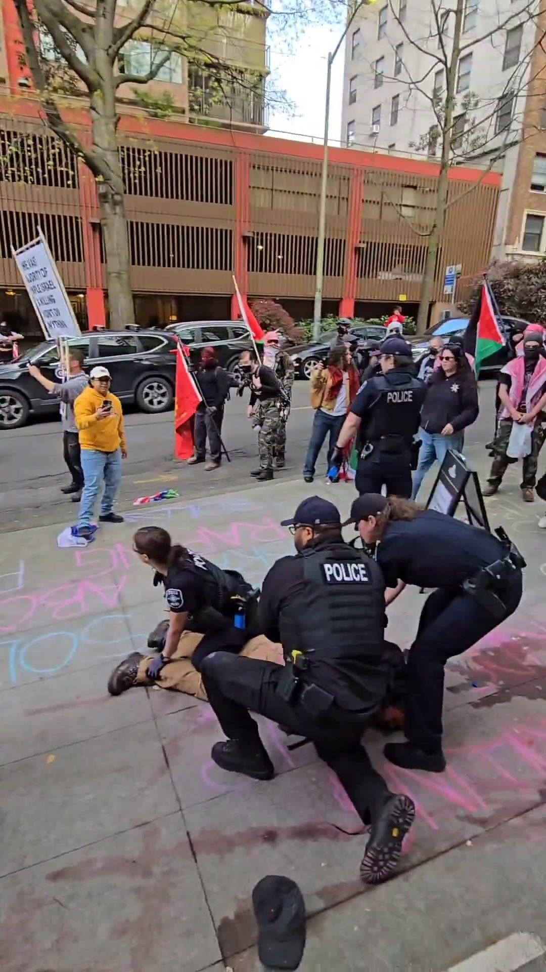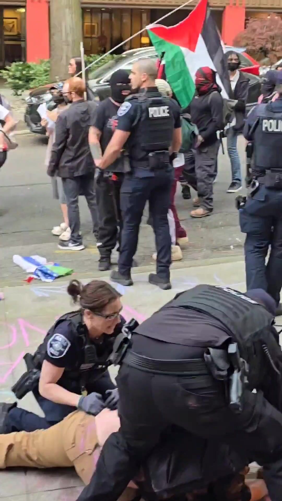 Pro Hamas, Antifa and communist activists started pushing and shoving police and the cops started making arrests