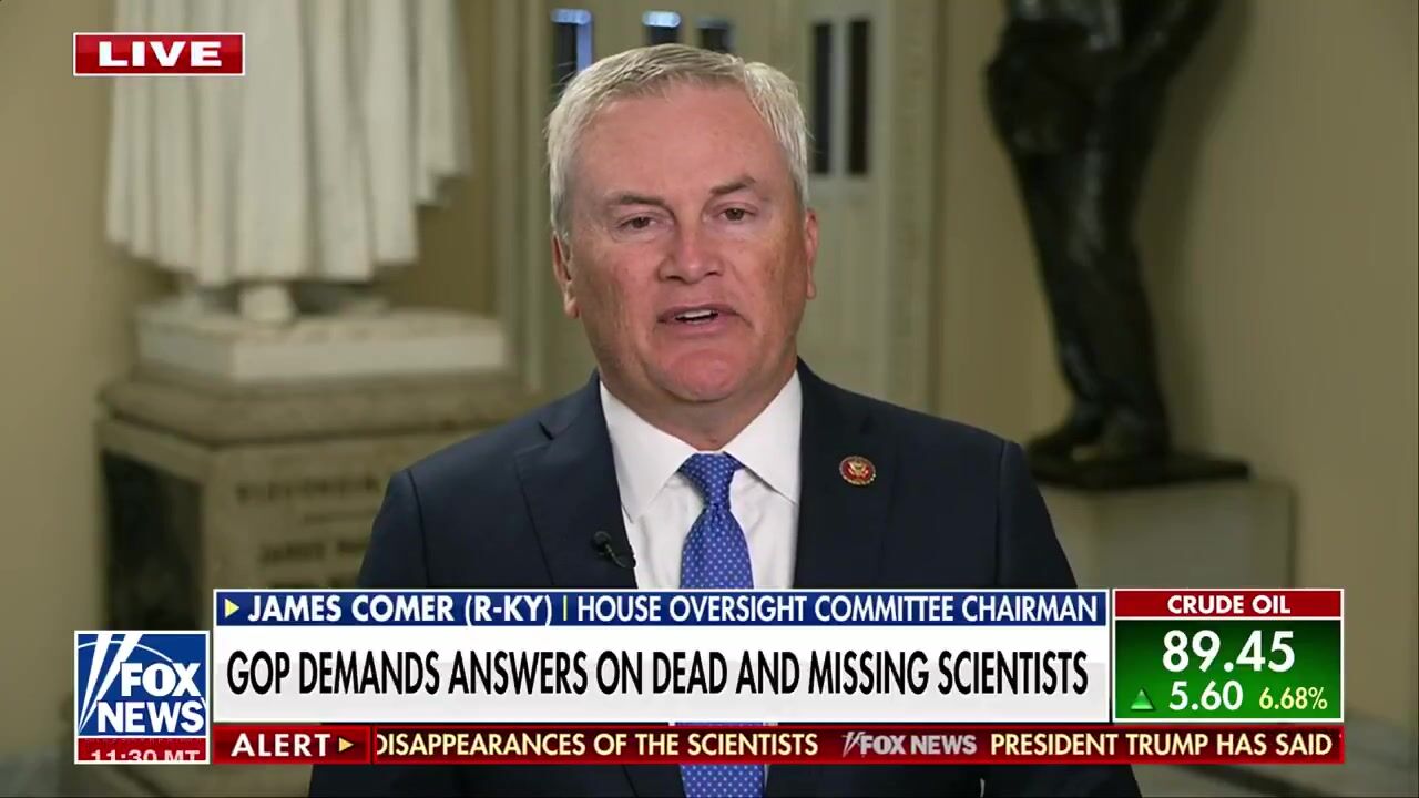 “It does appear that there’s a high possibility that something sinister is taking place here,” House Oversight Chair James Comer tells Fox.