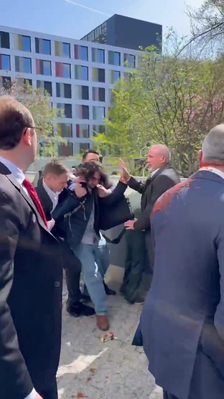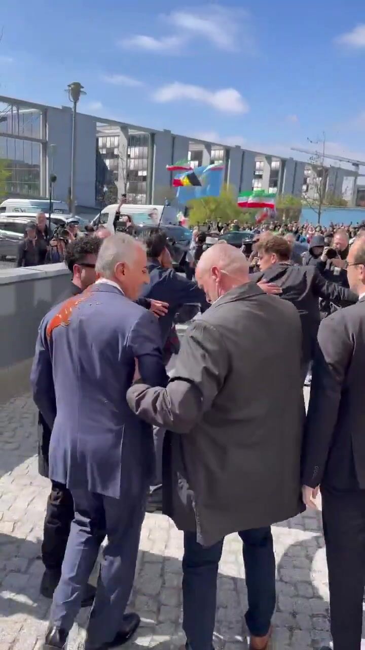 Iranian regime supporter throws paint at Crown Prince Reza Pahlavi in Berlin