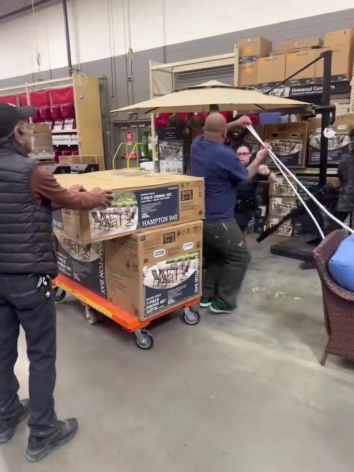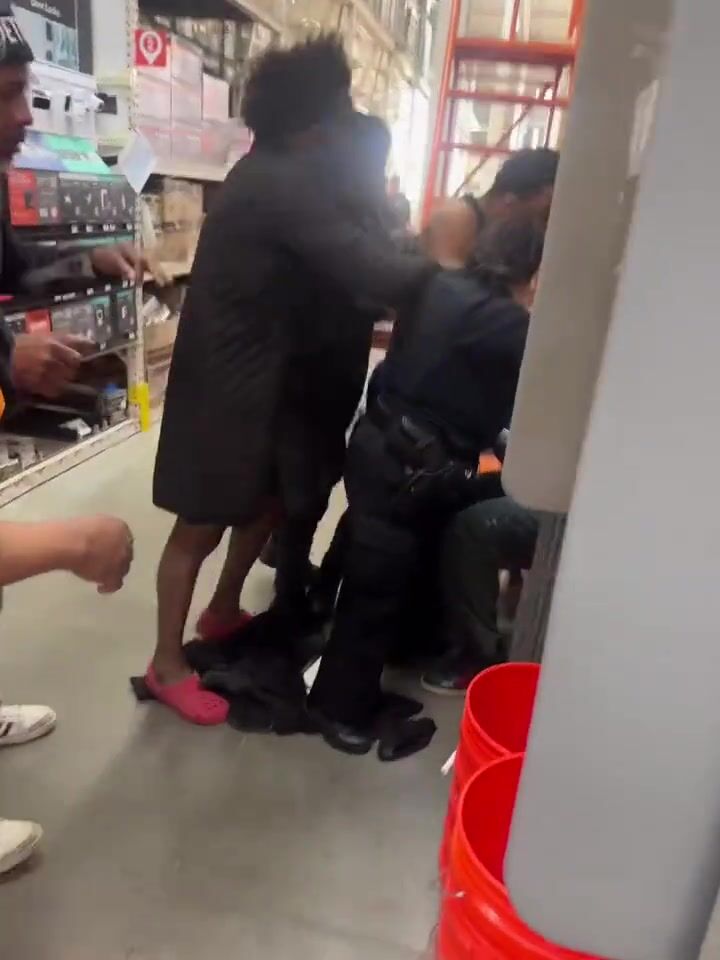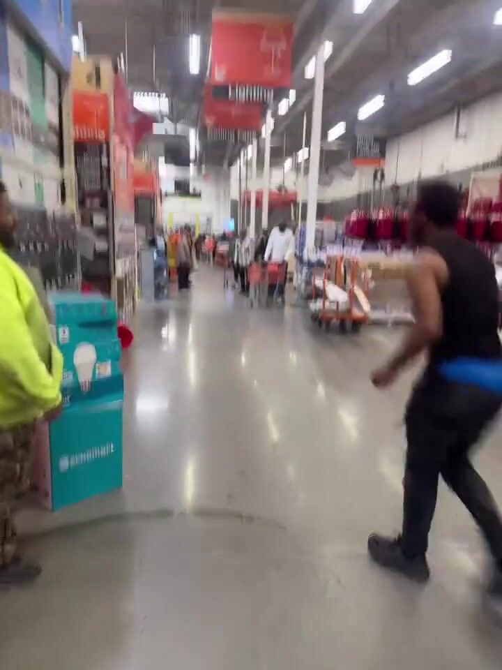 This happened at a Detroit Home Depot last night. Total mayhem.