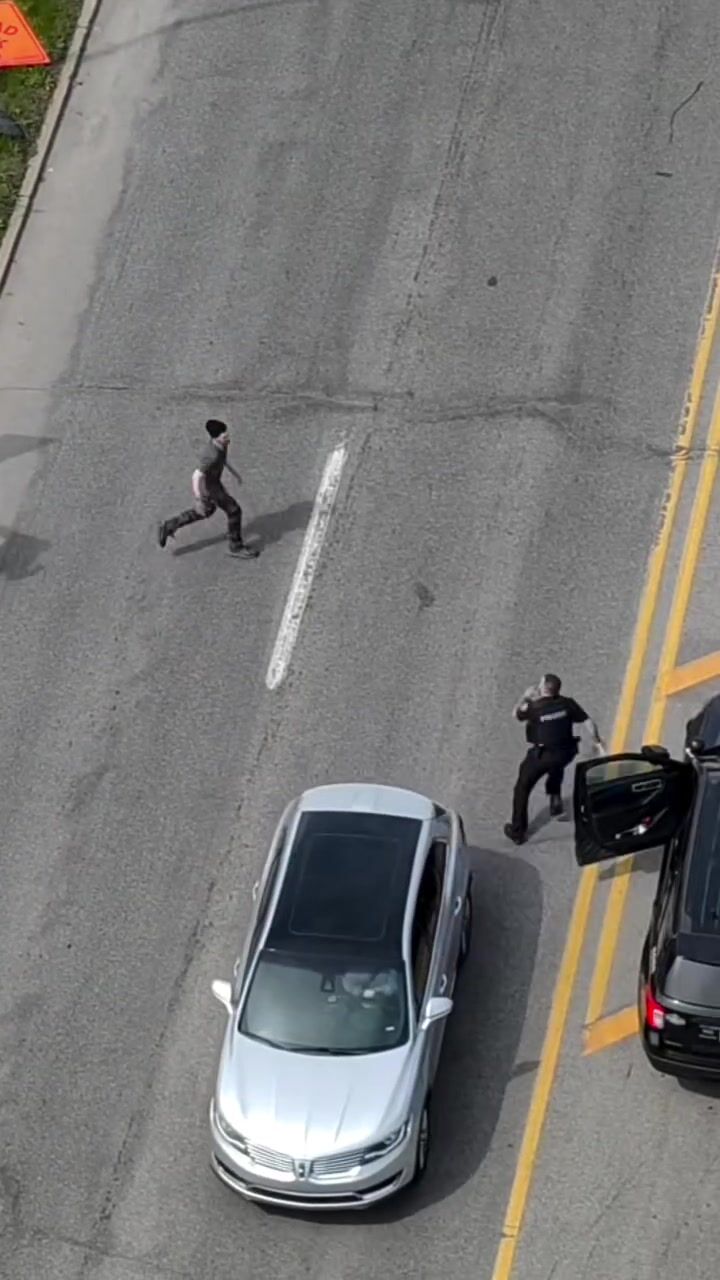 The suspect tried fleeing after he was pulled up on by a police officer but was quickly apprehended by another officer who took him to the ground.