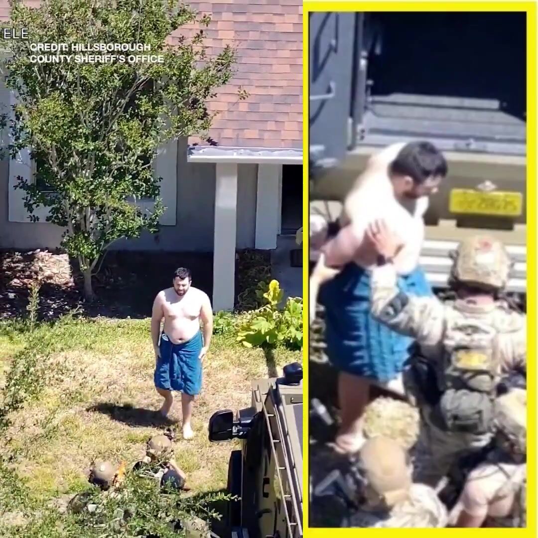 Patriots, this is every parent's nightmare. Hisham Saleh Abugharbieh, roommate of missing USF students Zamil Limon and Nahida Bristy, was just pulled out shirtless in a towel after a SWAT standoff.