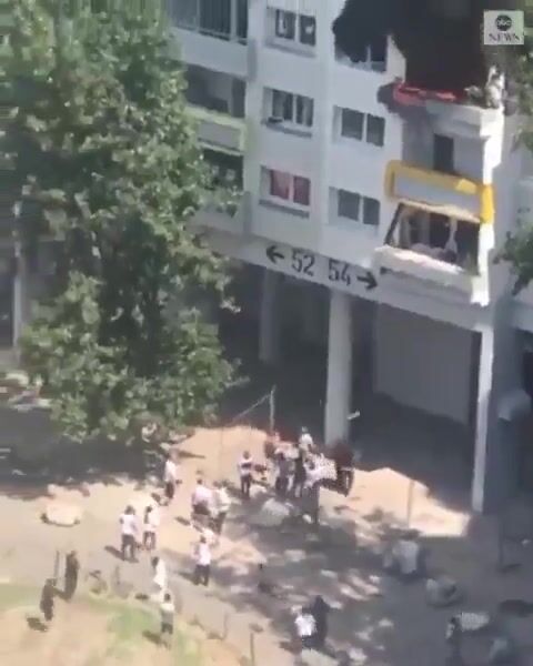 Two boys, ages 10 and 3–jumped 30 feet from a building, France. Two of the six adults who caught them broke their arms.