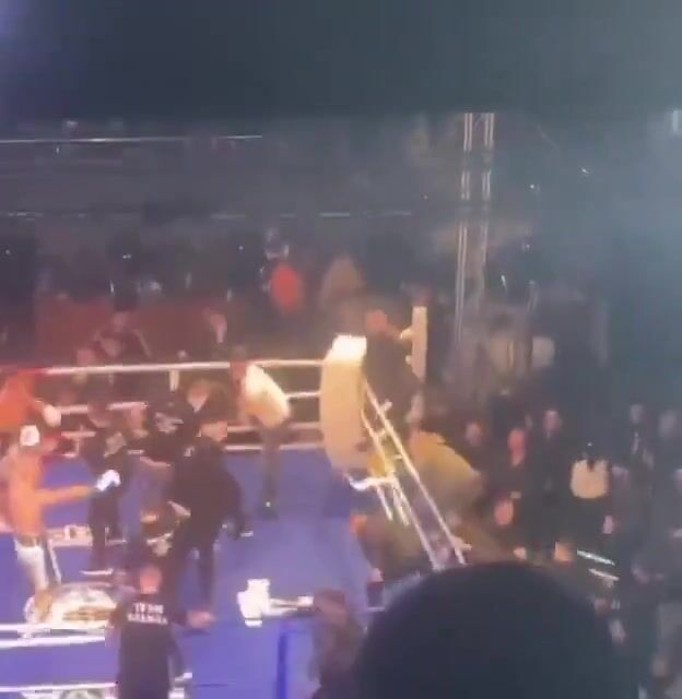 Turkish fans attack Russian boxer after he beat their fighter, match declared invalid.
