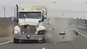 Steer Tire Blows On Dump Truck On Hwy412 SB