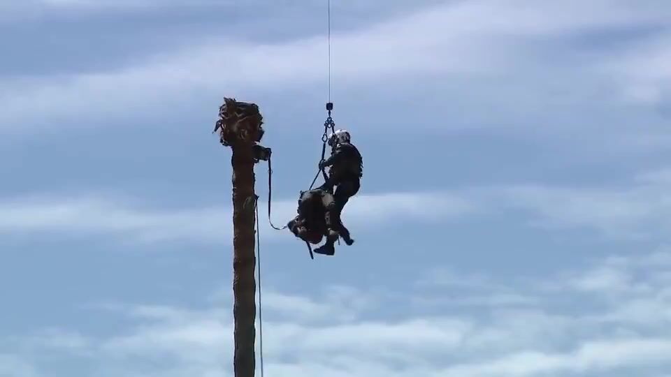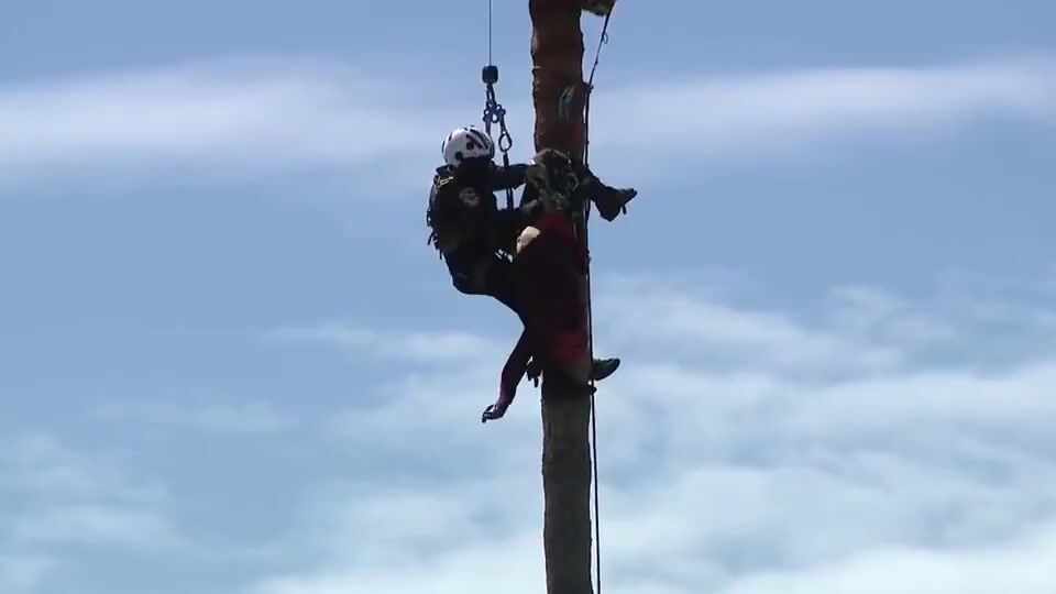 Assistant Fire Chief James Dobson stated, “This is the first time they have done an aerial pick off of a tree of this type. We are typically able to gain access from our aerial apparatus so this is a unique event.”