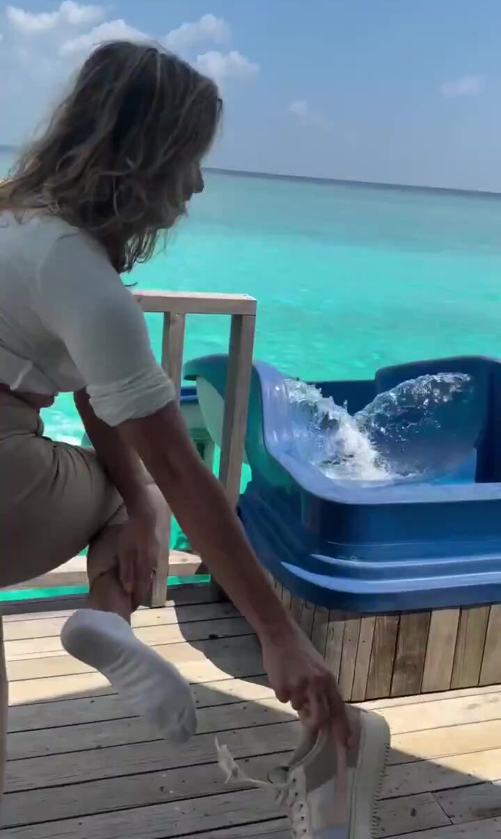A woman arrives at her luxurious overwater villa, skips unpacking and changing clothes, and rushes straight to the waterslide, diving in fully dressed as if it’s her last day on Earth! Pure unfiltered joy