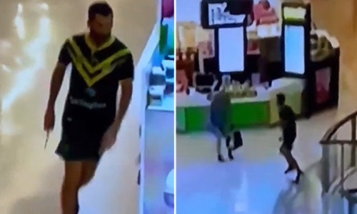 Witnesses say the dark-haired, bearded man, wearing a Kangaroos ARL jersey, chased and slashed at shoppers as he went on a wild rampage through Westfield Bondi Junction before he was shot dead by police.