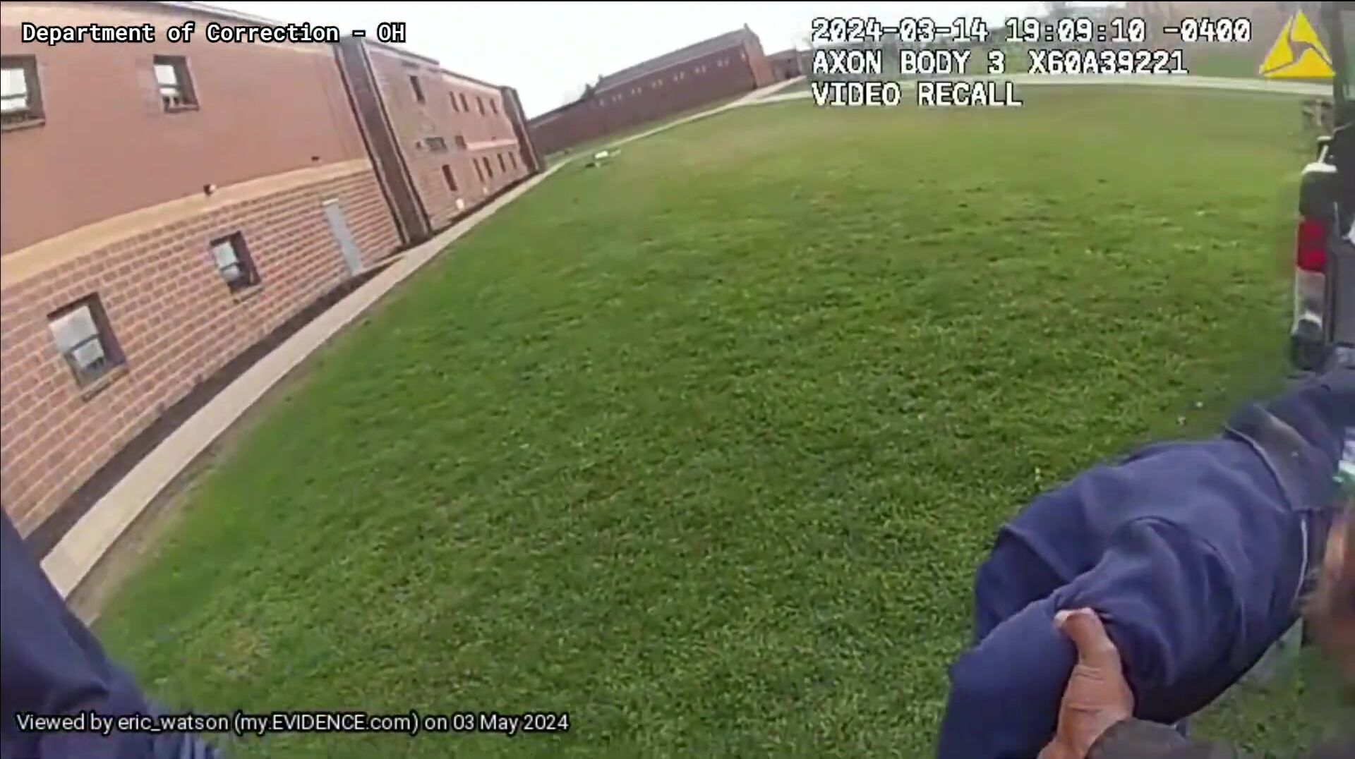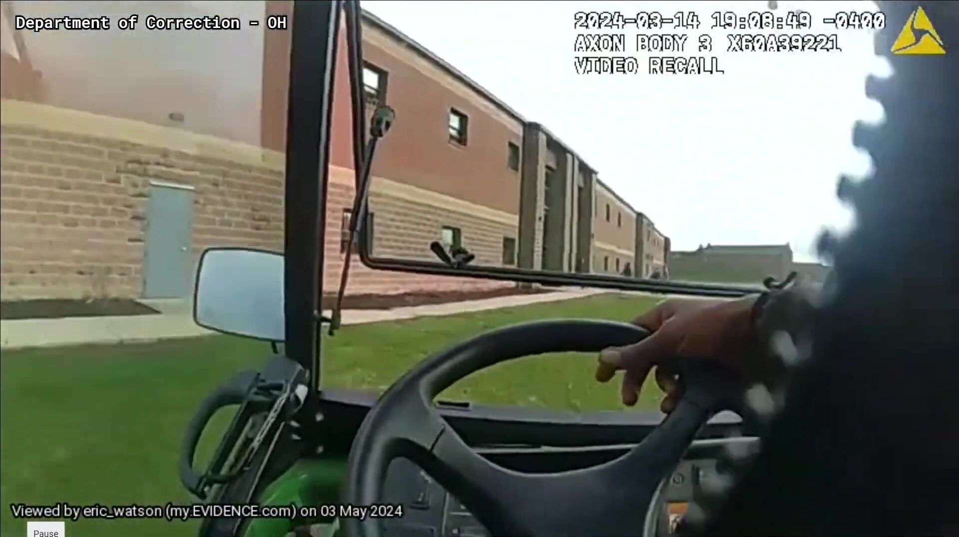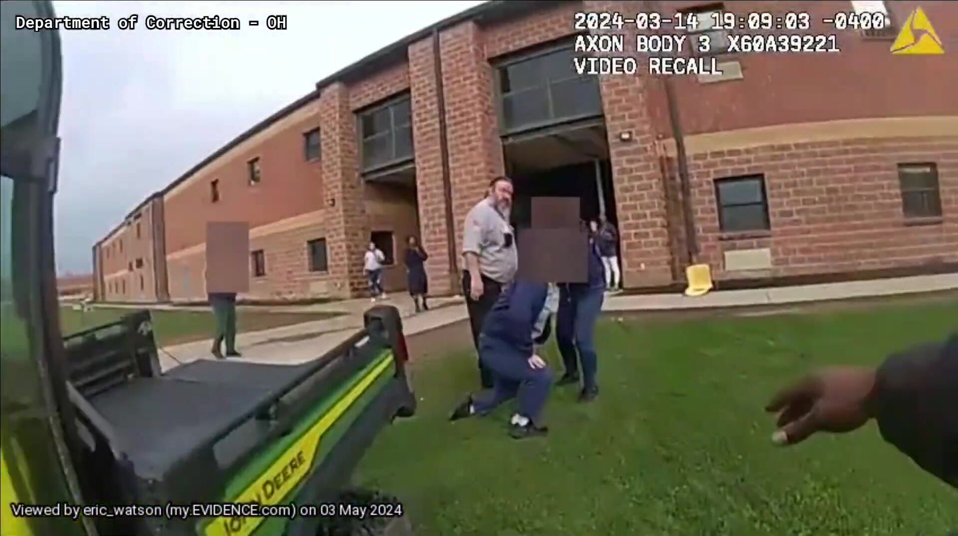 The body cam footage shows a corrections' lieutenant, later identified as Thierno Bah, driving a UTV (Utility Terrain Vehicle) at a high rate of speed and then appearing to drive directly into a group of inmates, striking one individual. The inmate reportedly sustained injuries and received hospital treatment.