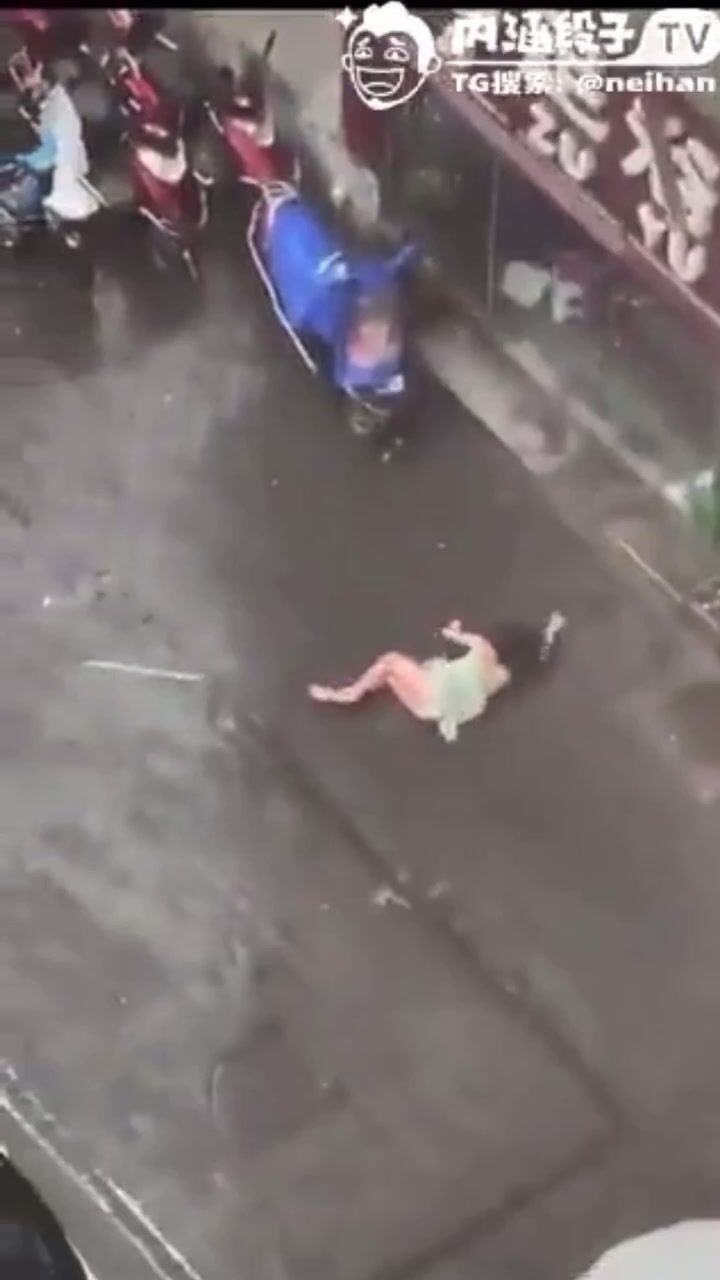 Girl in Dress manages to Fall a Few Feet but Fix her Skirt when She hits Pavement