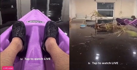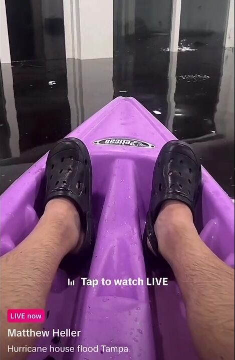Dude in a Canoe Shows off Aftermath of Hurricane Helene From His Living Room