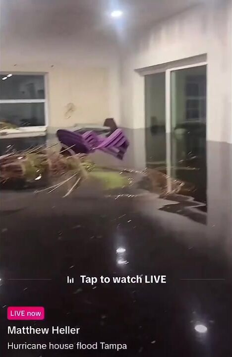 Man in Tampa, FL is broadcasting live from his living room. Shows the aftermath of Hurricane Helene.