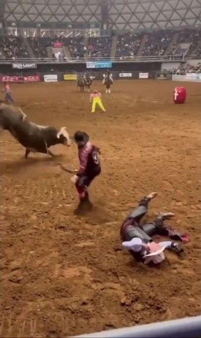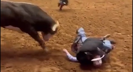 Father Jumps on and Shields Unconscious Son From Raging Bull
