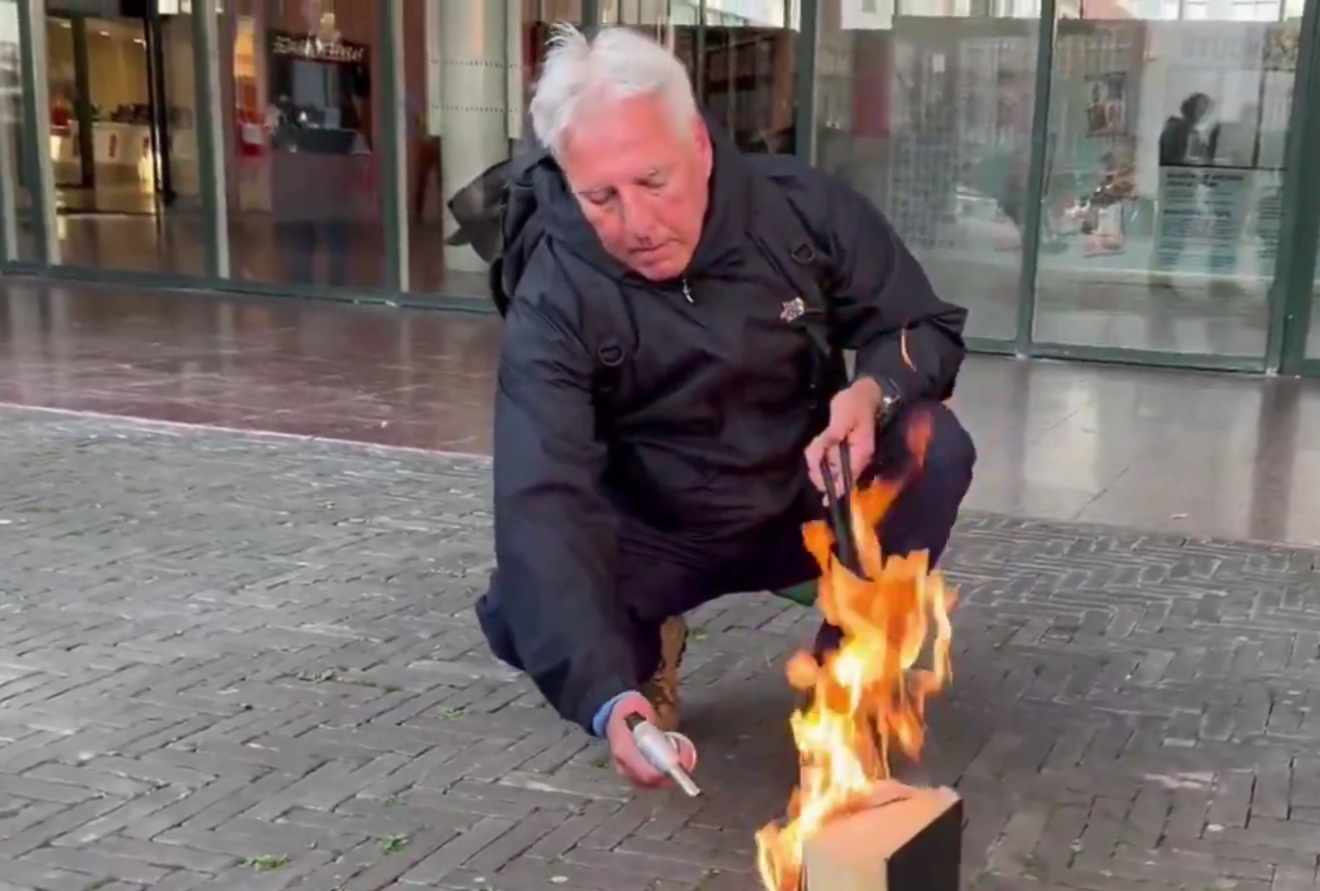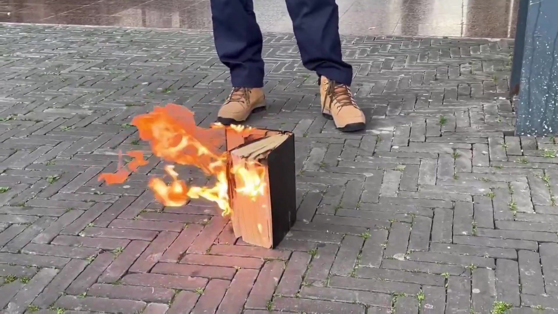 Anti-Islam Leader Edwin Wagensveld proudly Burns the Koran in Amsterdam