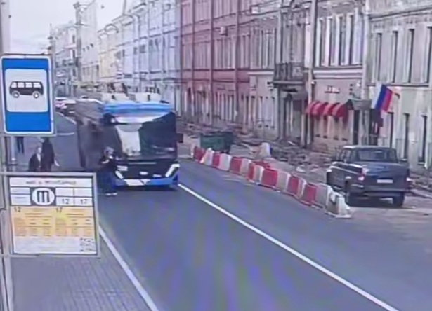 The video, filmed from two angles, shows that the pedestrian did not look around and stepped onto the roadway when a trolleybus was driving behind her.