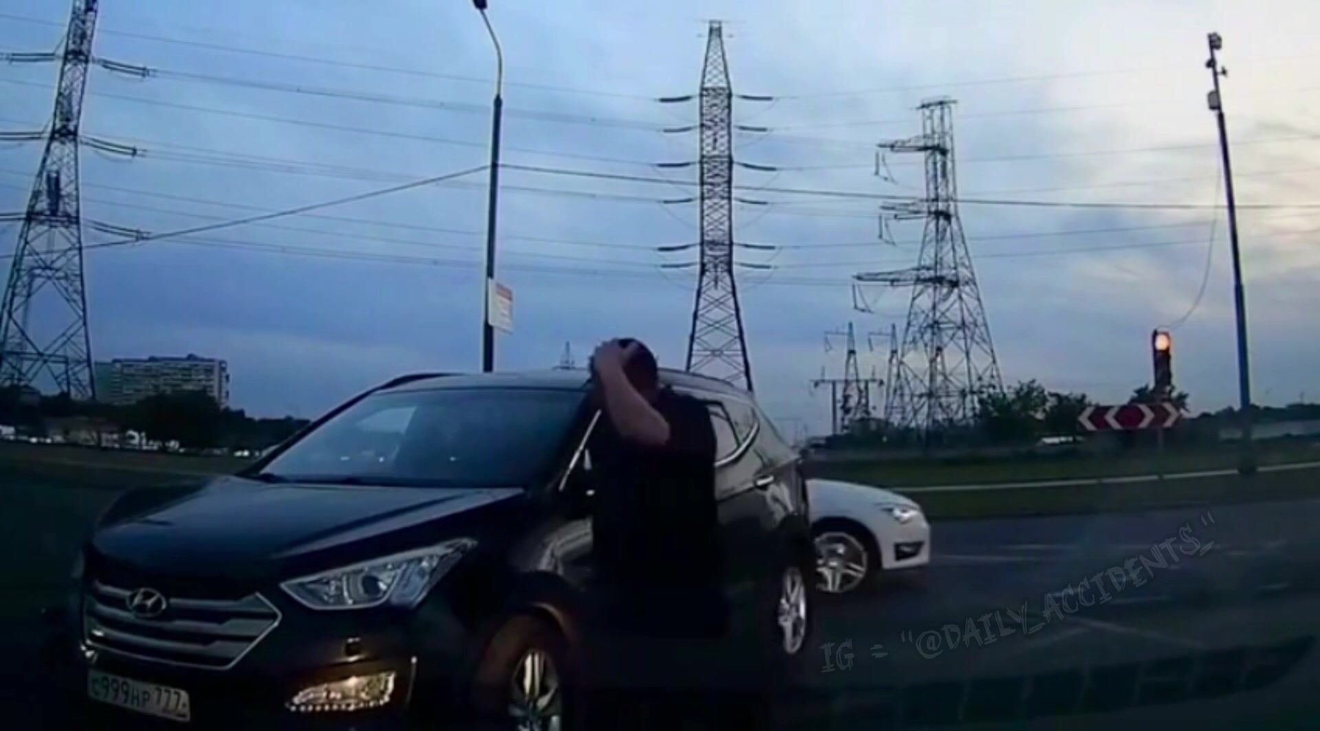 When a motorcycle hits a car close dashcam capture
