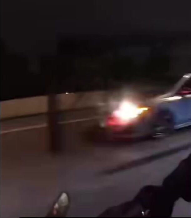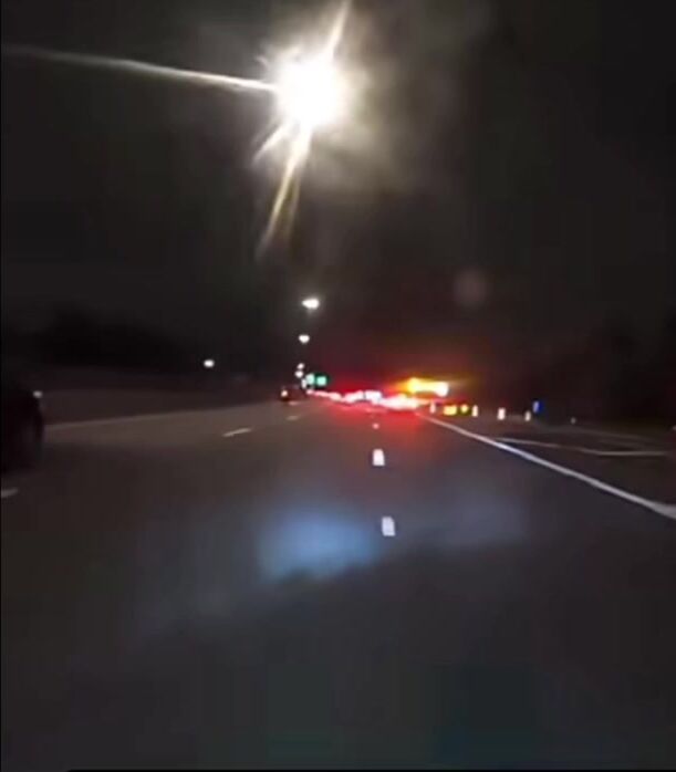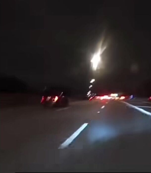 Kid running like an idiot on a motorcycle at night on the expressway rear ends a car and high speed and gets really lucky.
