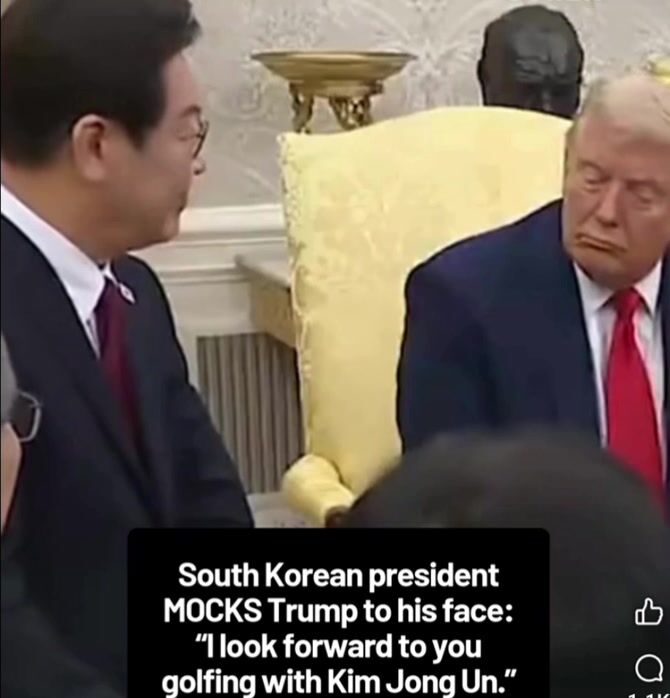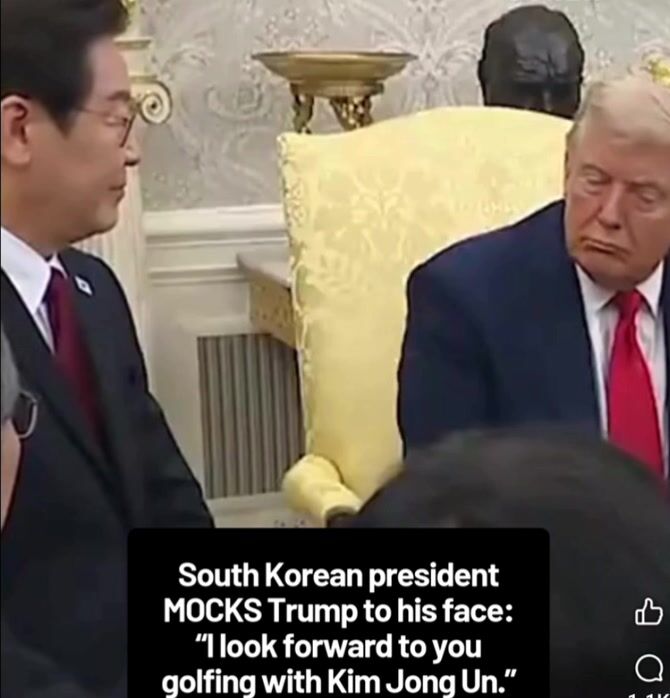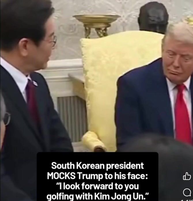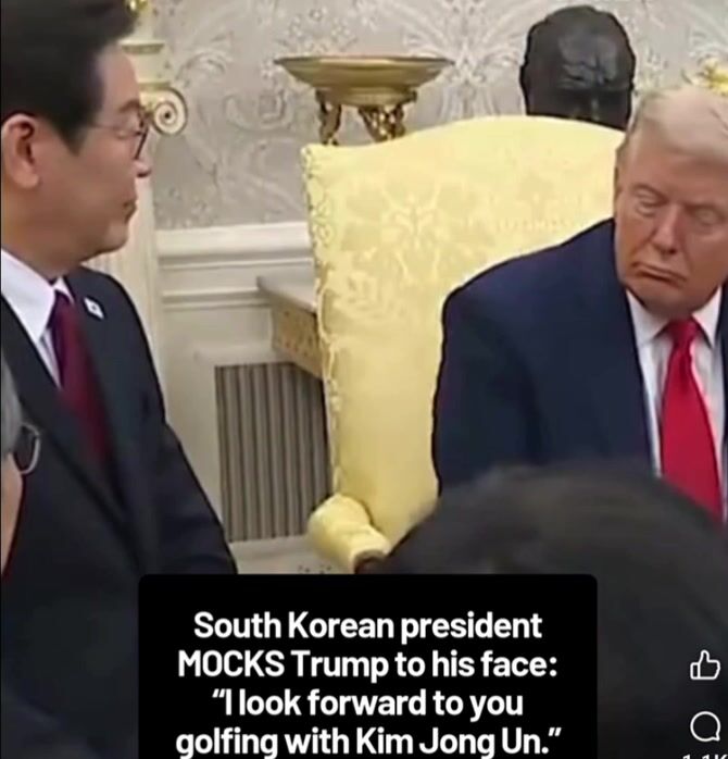 Lee Jae-myung, the president of South Korea, mocks Trump to his face, and then laughs at him. Cheeto cultists will claim he was being sincere. Perhaps he was, what are the tariffs against South Korea right now. The US is a laughing stock, what a sad departure from what we used to be